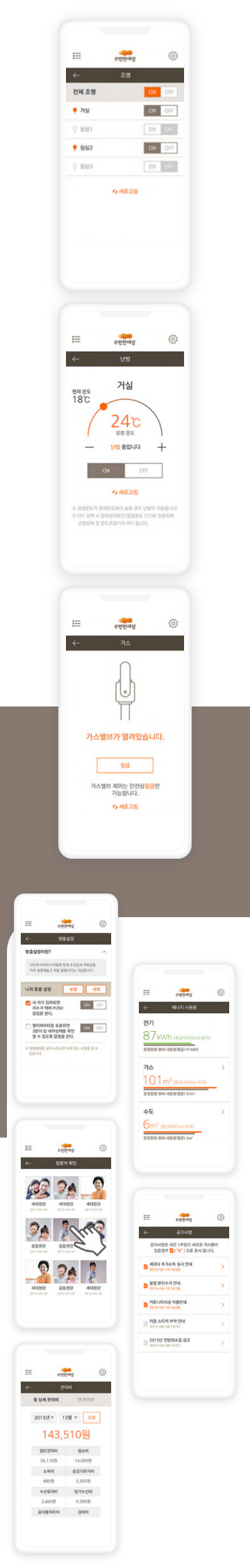 Date 2016.02~2017.12 Client 대림 코퍼레이션 Type 대림 e편한세상 사물인터넷(IoT)(Mobile+Tablet APP)